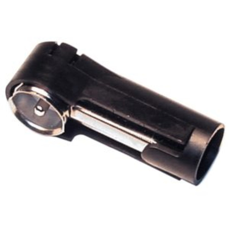Vinklad antennadapter för billjudsinstallationer där utrymmet är begränsat. Omvandlar ISO-kontakt (hona) till pinnkontakt (hane) med 90-graders vinkel – perfekt när du behöver ansluta antennkabeln i trånga utrymmen bakom stereon.