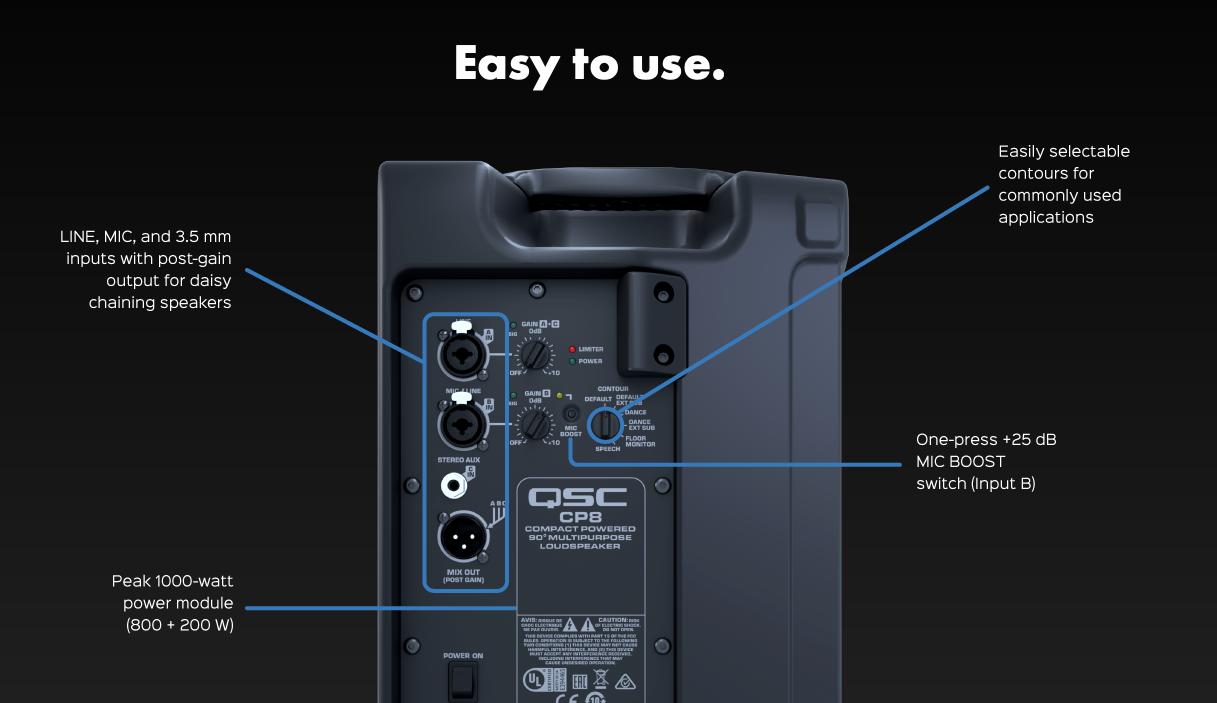 QSC CP12 är en aktiv 12-tums PA-högtalare som kombinerar professionell ljudkvalitet med ett attraktivt pris. Med 1000W effekt och QSC:s beprövade ljudteknik levererar CP12 kraftfullt och tydligt ljud för live-event, installationer och touring – utan att spräcka budgeten.
