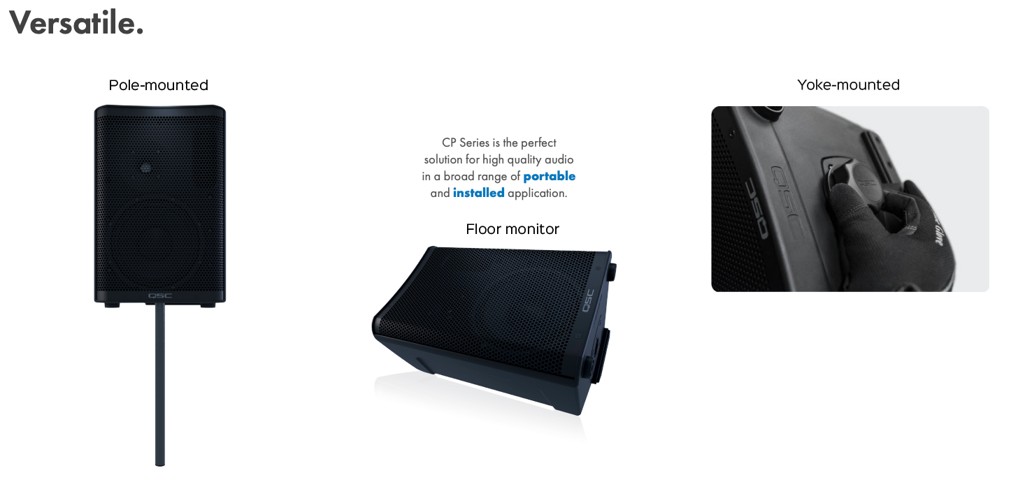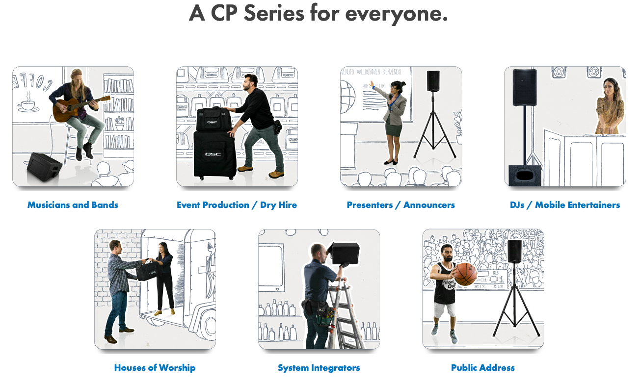 CP-serien är QSC:s svar på behovet av prisvärd men pålitlig PA-utrustning. CP12 använder samma designfilosofi som QSC:s premium-serier men med fokus på kostnadseffektivitet. Resultatet är en högtalare som levererar professionell prestanda för klubbar, eventföretag och installationer där budget är en viktig faktor.