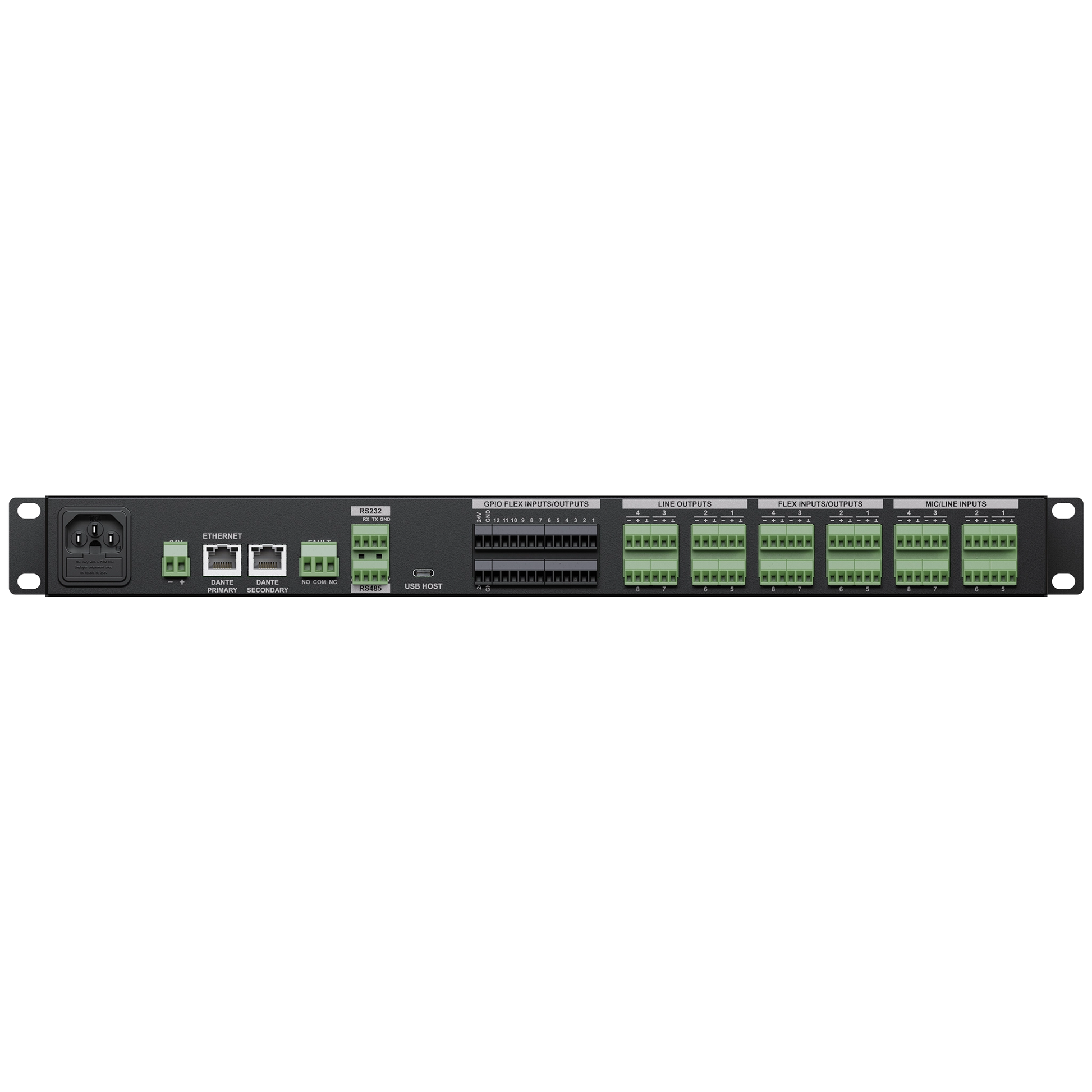 - Dante: 16x16 kanaler (expanderbar till 64x64 med tillbehör)